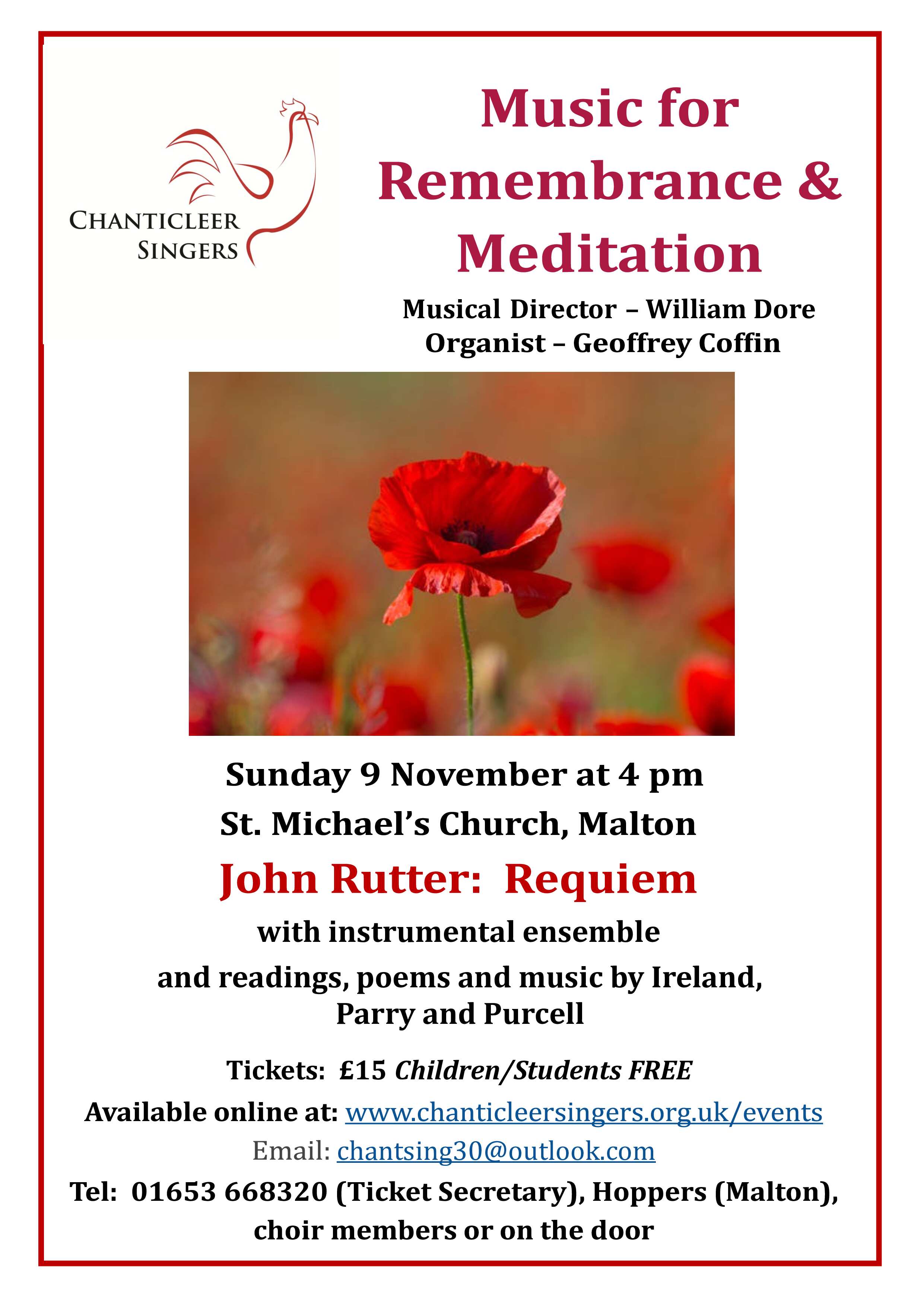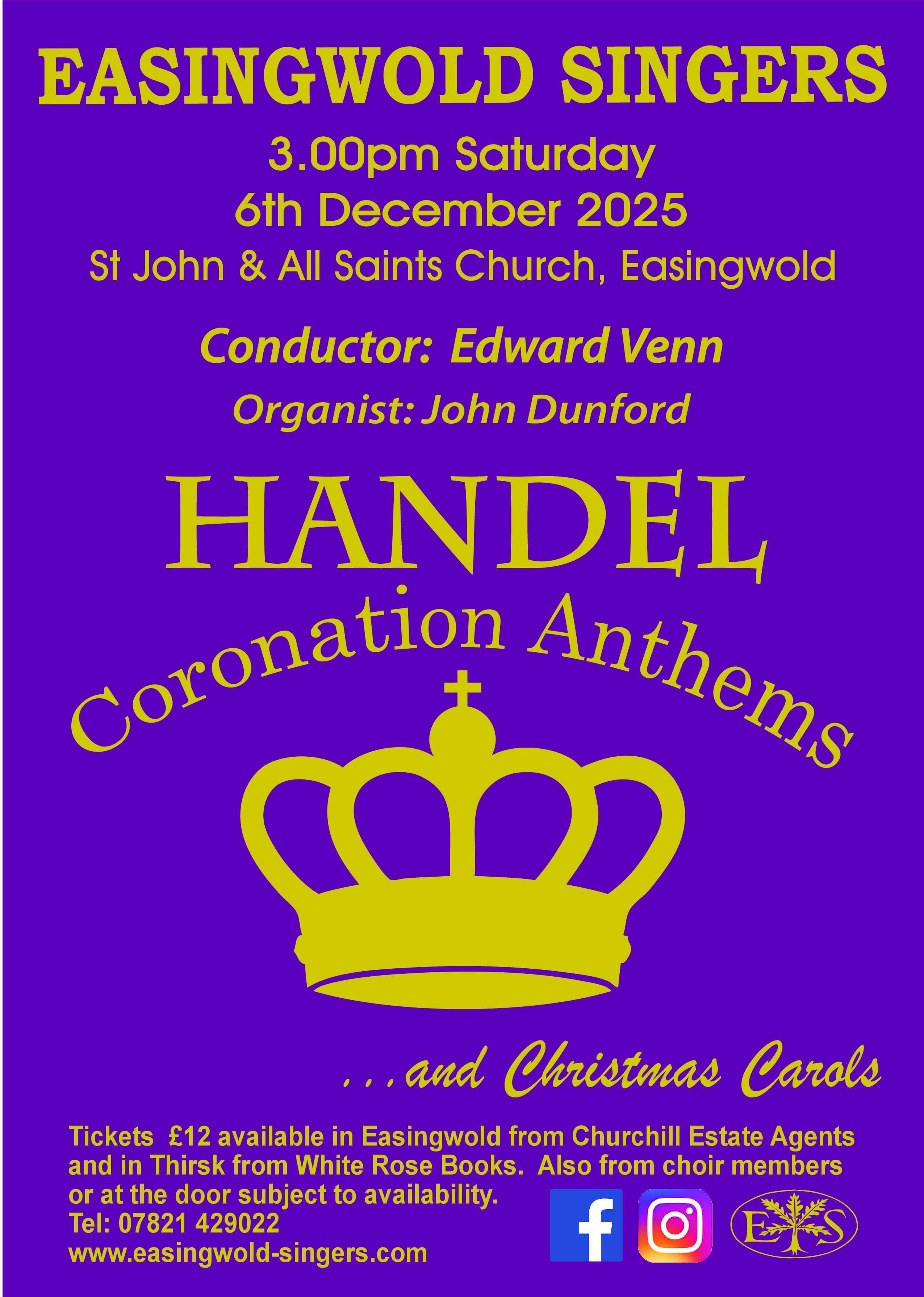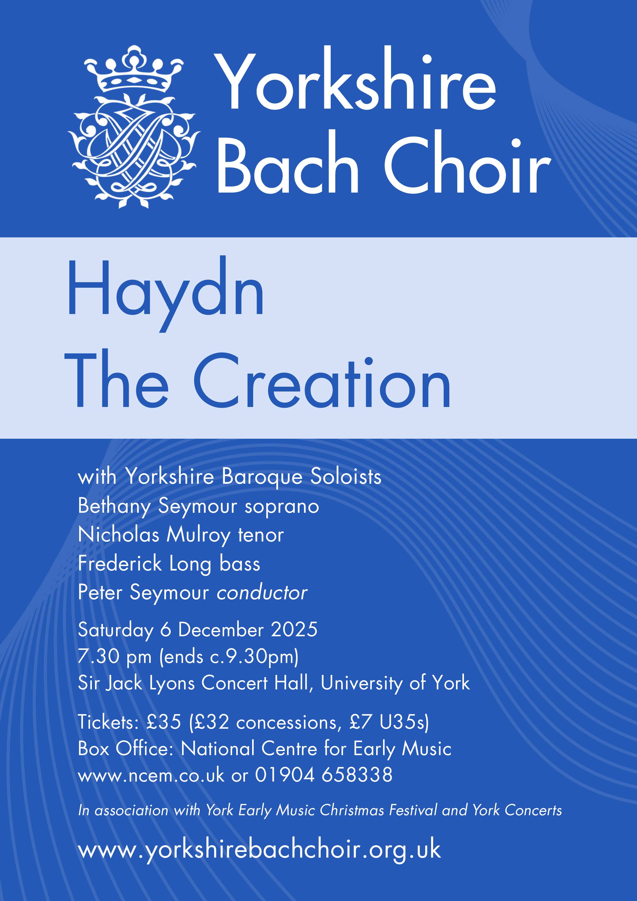 This section gives details of local choral events over the coming months. If you know about a choral event in Yorkshire that you would like us to include, please contact the Secretary.